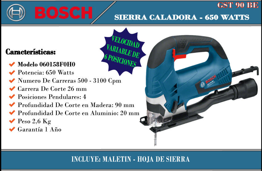 Bosch Sierra Caladora 650 Watts Gst 90be Con Maletin