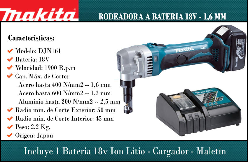 Makita Roedora 1.6mm 18v Cort. 45-50mm + 1 Bat/carg./ Maletin