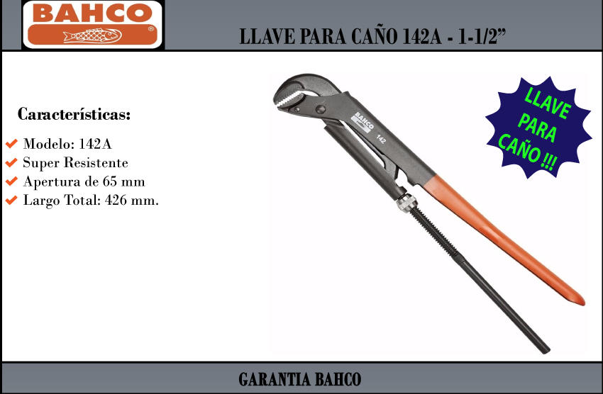 Bahco Llave P/caño Universal 11/2''406mm 142a