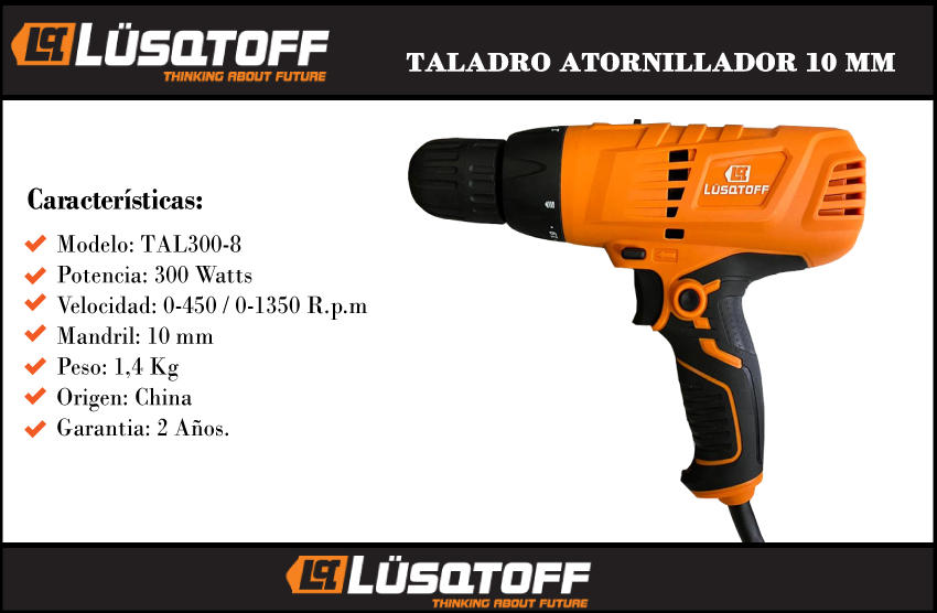 Lusqtoff Atornillador Taladro 10 Mm 300w