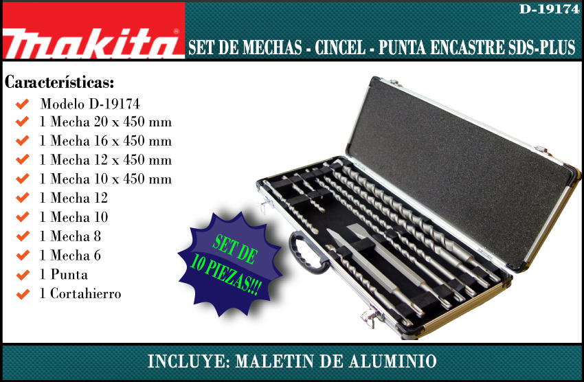 Makita Set 10 Piezas Mechas Widia - Cincel Y Punta Sds D19174