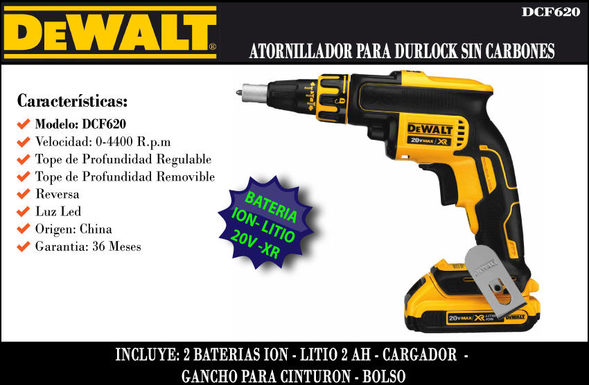 Dewalt Atornillador Durlock Inalamb. S/ Carb. 20v Max Xr Li-ion 2bat. 1carg.