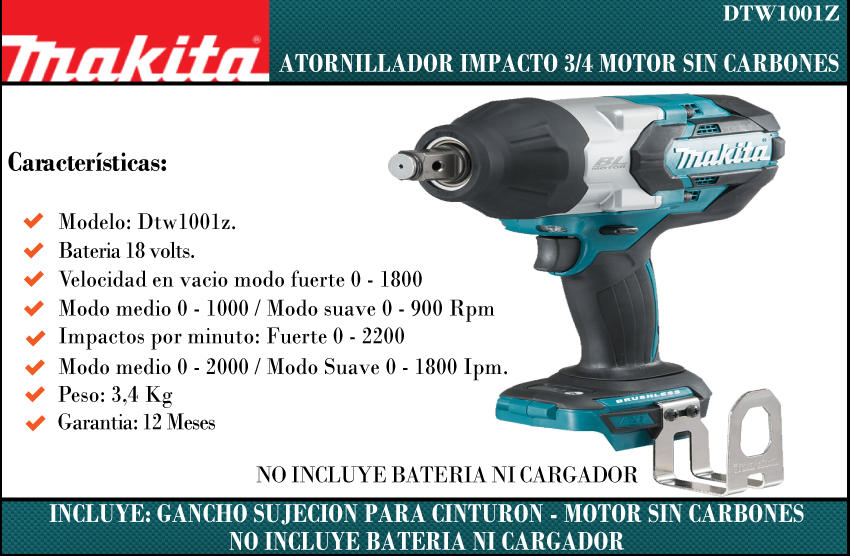 Makita Lave De Impacto Inalámbrica 18v 1,050 N·m S/bateria S/ Cargador