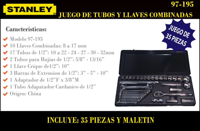 Stanley Set 35 Piezas Llave Combinada / Bocall. 97-195