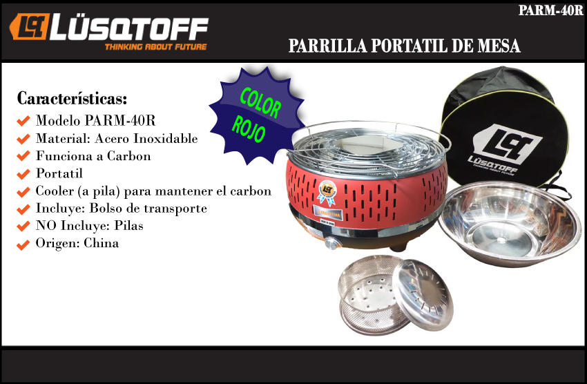 Lusqtoff Parrilla Portatil De Mesa Color Rojo