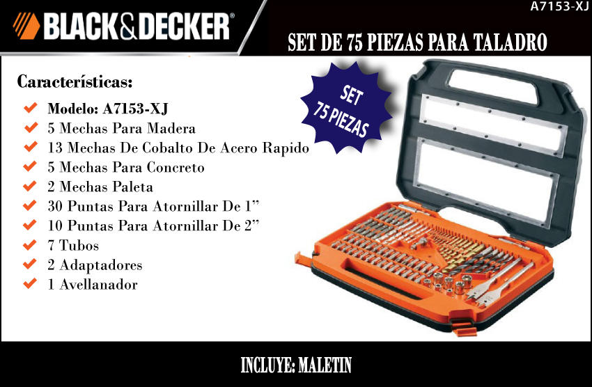 Black & Decker Set 75 Piezas Atornillador, Mechas, Puntas