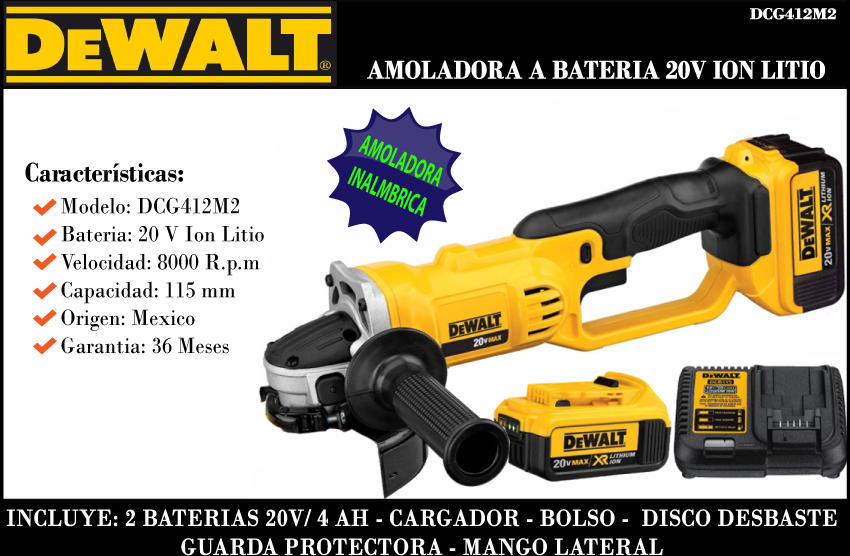 Dewalt Amoladora 125mm 20v 4 Amp. 2 Bat. Ion Li Cargador 7000rpm