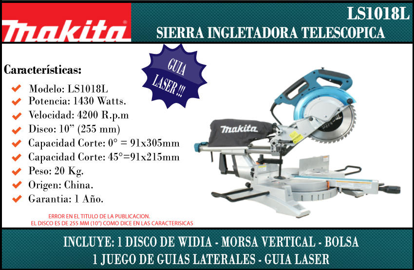 Makita Sierra Ingletadora 10" Telesc. C/laser1430w (ls1018l)