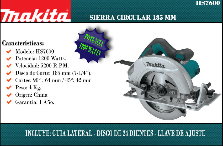 Makita Sierra Circular 185mm 7.1/4 1200w (hs7600)