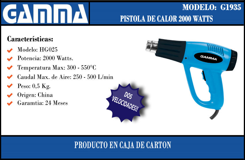 Gamma Pistola De Calor 2 Temp. 300 Y 500 °c 2000 W
