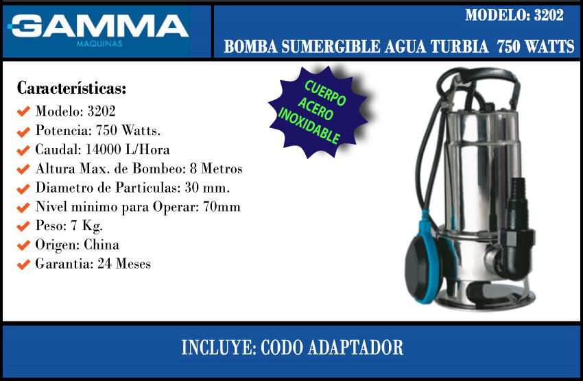 Gamma Bomba Sumergible 1hp Inox Agua/suc