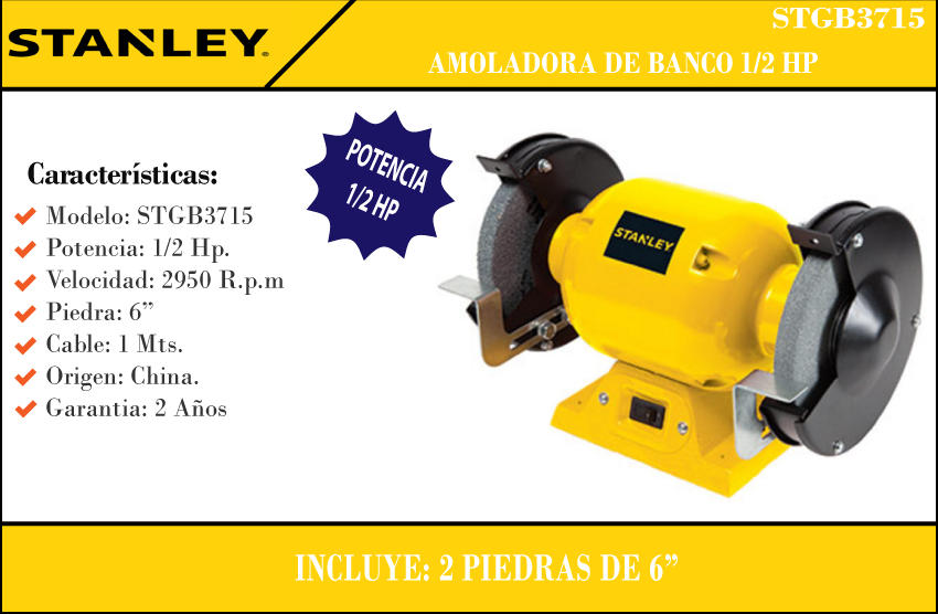 Stanley - Amoladora De Banco 1/2hp 373w Diamet.6" 152mm (3715)