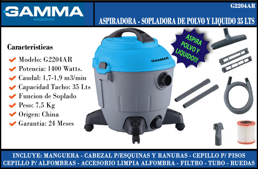 Gamma Aspiradora 35 Lts 1400w 220v Seco - Humedo