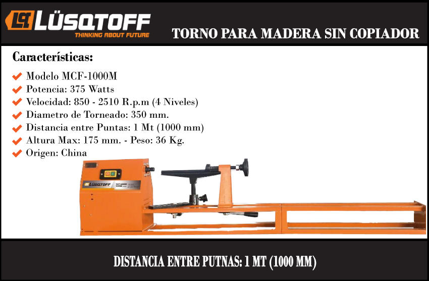 Lusqtoff Torno Para Madera 1 Mts. Sin Copiador 375 W