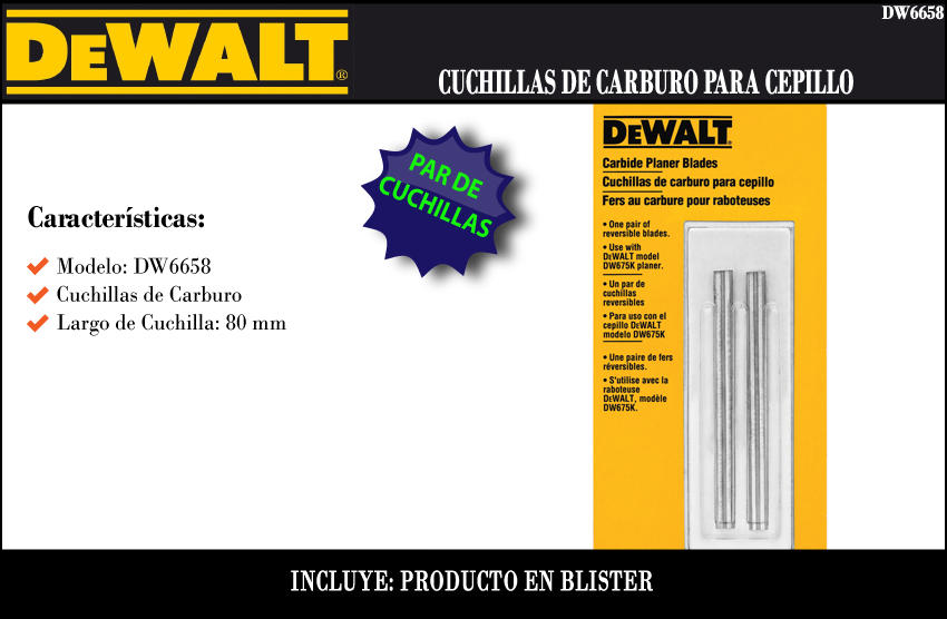 Dewalt Cuchillas Para Cepillo 82mm Doble Filo X 2 Unid