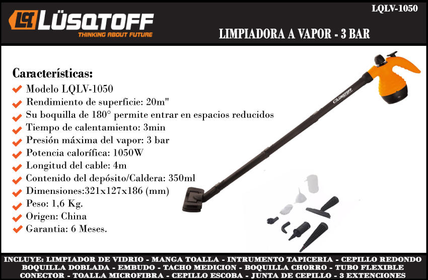 Lusqtoff Limpiadora A Vapor 1050 Watts - 3 Bar + Accesorios