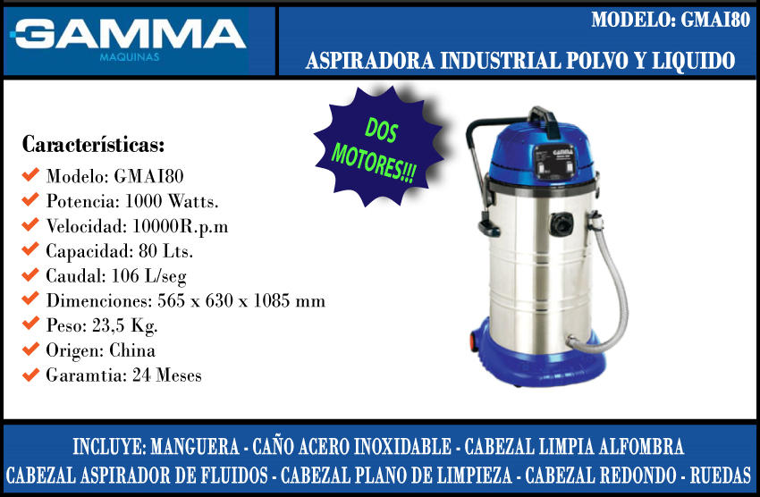 Gamma Aspiradora 80 Lts 2000w 220v 2 Motores