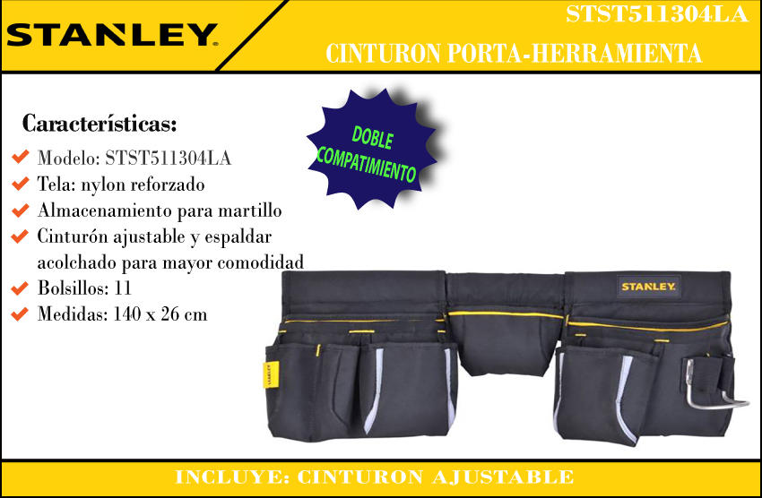 Stanley Porta Herramientas 3 Cuerpos + Cinturon Regulable