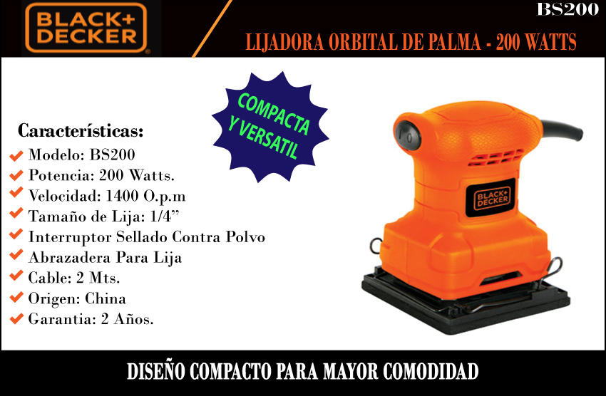 Black & Decker Lijadora Palma 1/4 Hoja 200w