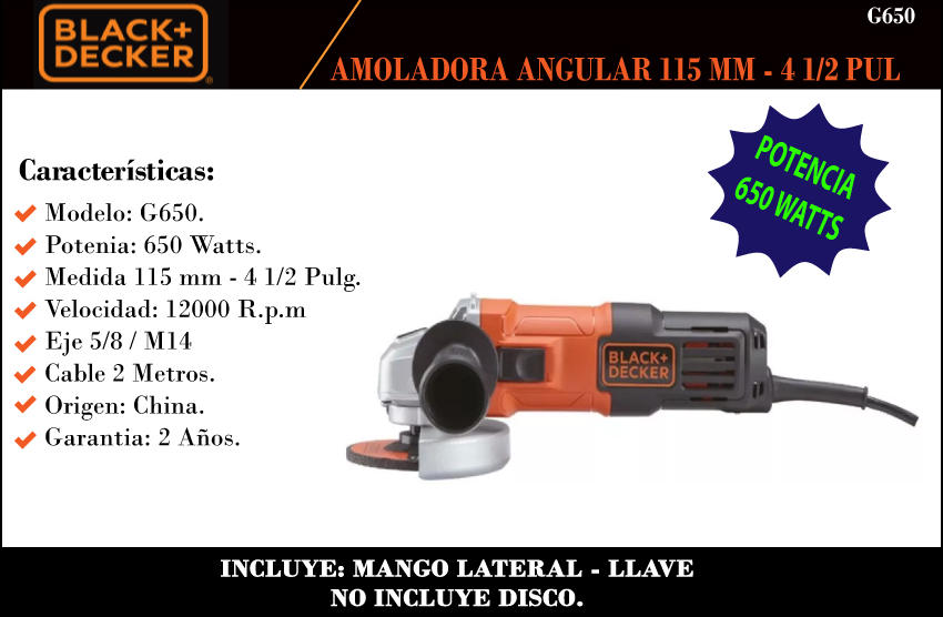 Black & Decker Amoladora 4 1/2" 650w (g650)