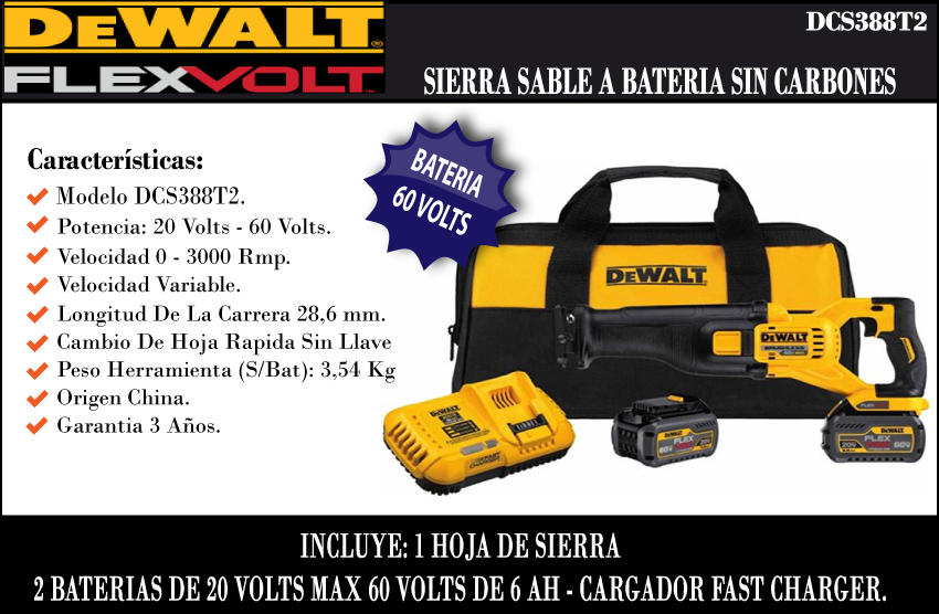 Dewalt Sierra Sable 60v Flex Volt - Brushless (2 Baterias - Cargador - Bolso)