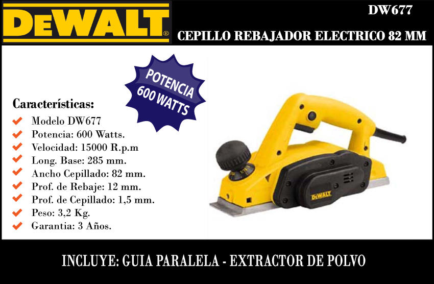 Dewalt Cepillo 600w Cuchilla 82mm (dw677-ar)