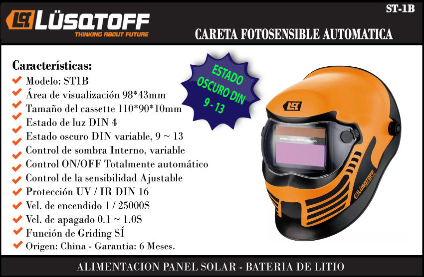Lusqtoff Careta Mascara P/ Soldar Fotosensible Din 9-13