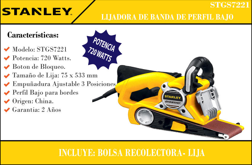 Stanley - Lijadora De Banda 720w Lija 75x533mm 244rpm C/bolsa Rec.