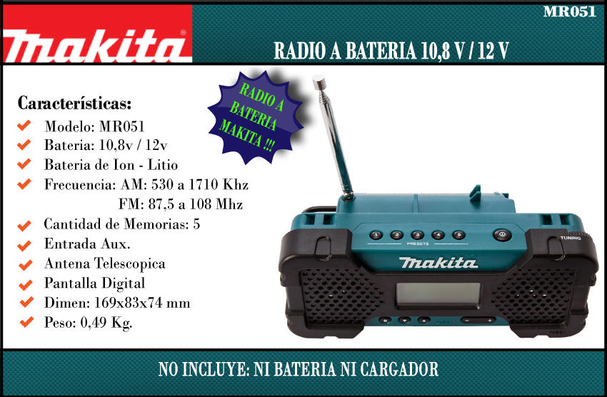 Makita Radio A Bateria 10,8v S/bateria Y S/cargador