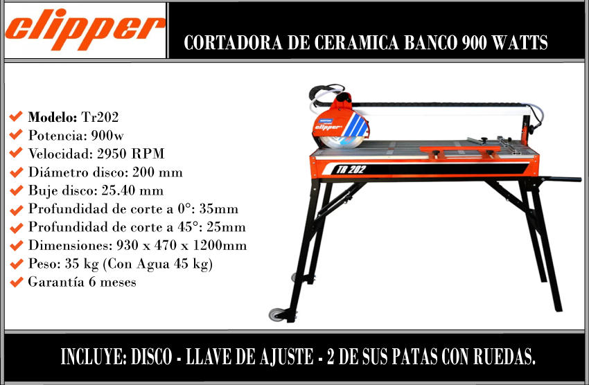 Clipper Cortadora Cerámica De Banco 900w Tr202