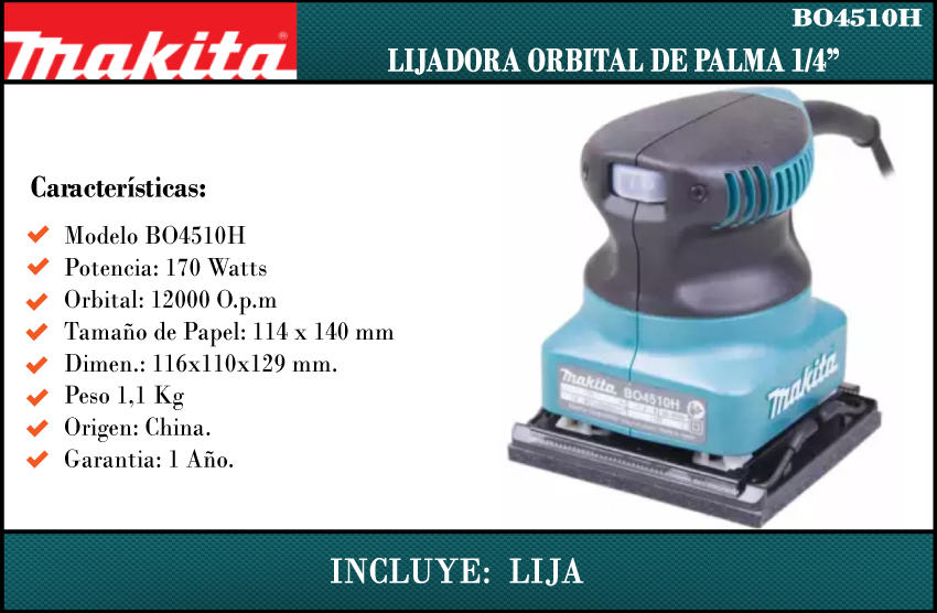 Makita Lijadora De Palma Orbital 170w - 1/4"