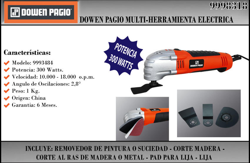 Dowen Pagio Multi Cortadora 300 W Vel. Var. 3 Acc.