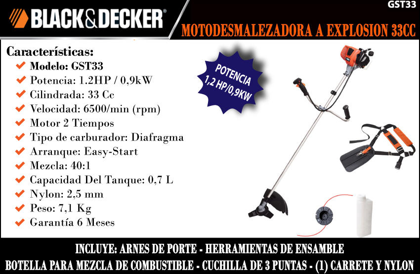 Black & Decker Desmalezadora Combinada 2tiem. 1,2hp 33cc