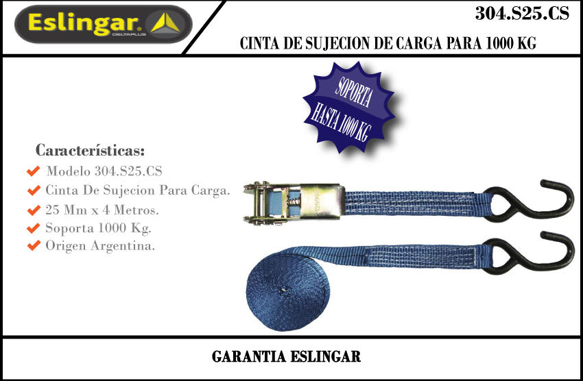 Eslingar Cinta Sujecion Carga Azul 25mm 4mt. 1ton. (ect-025-008-4-gj)