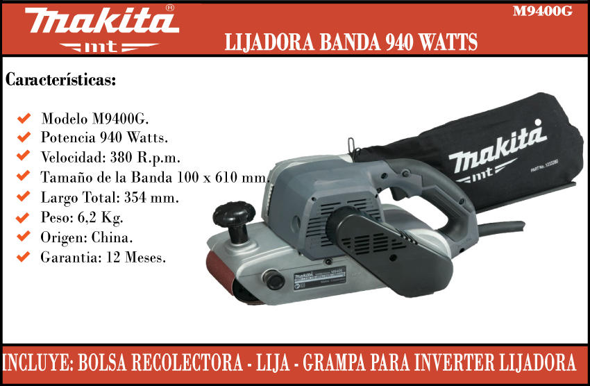 Makita Lijadora Banda Mt 940w Lija 100x610 380m/min. (ex Mbs402)