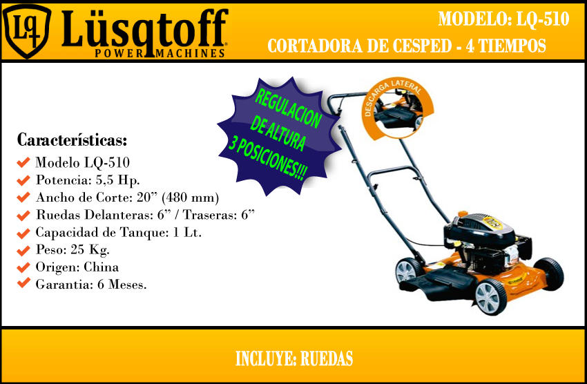 Lusqtoff Cortadora Cesped 5.5hp 20" Sin Bolsa Desc. Lat. 4 Tiemp.