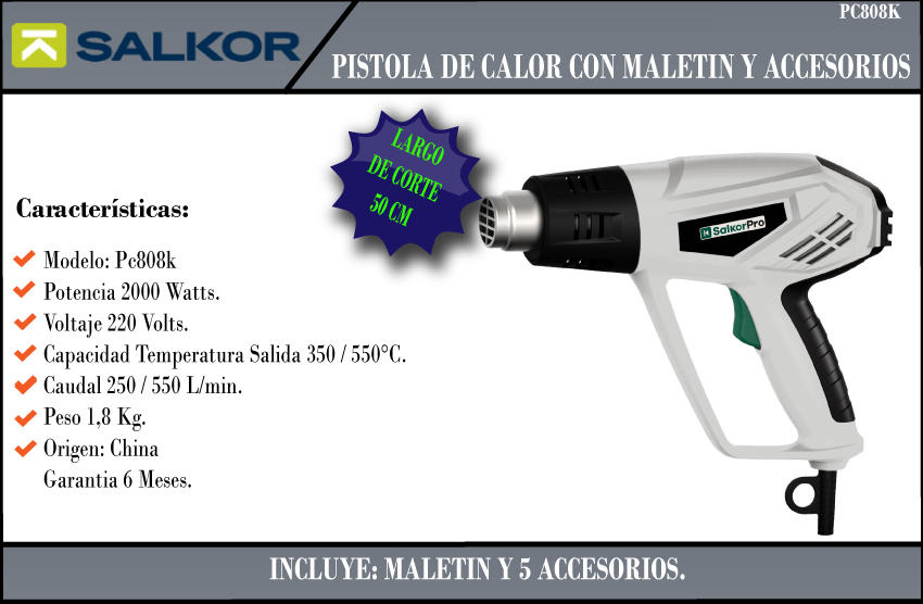 Salkor Pistola De Calor 2000 W Con Maletin Pc300k