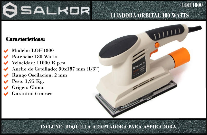 Salkor Lijadora Orbital 180w Lija De 1/3"