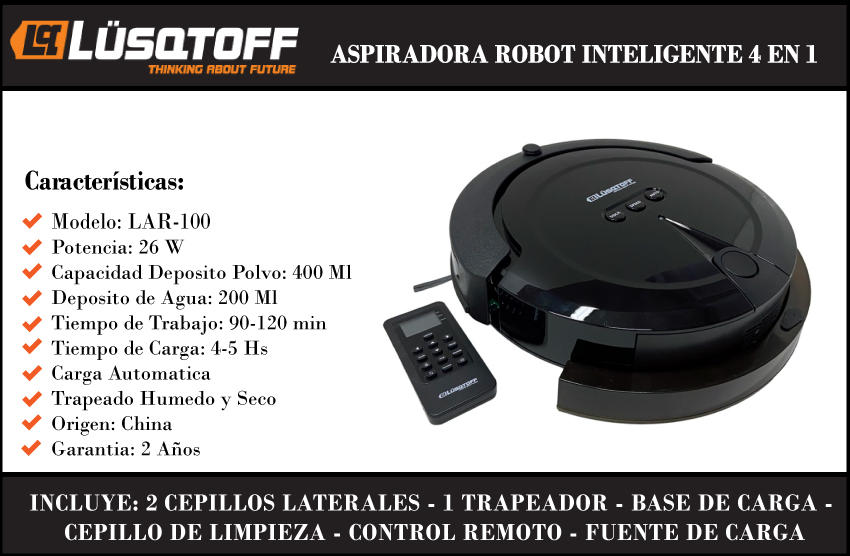 Lusqtoff Aspiradora Robot Inteligente 4 Funciones + Control (black)