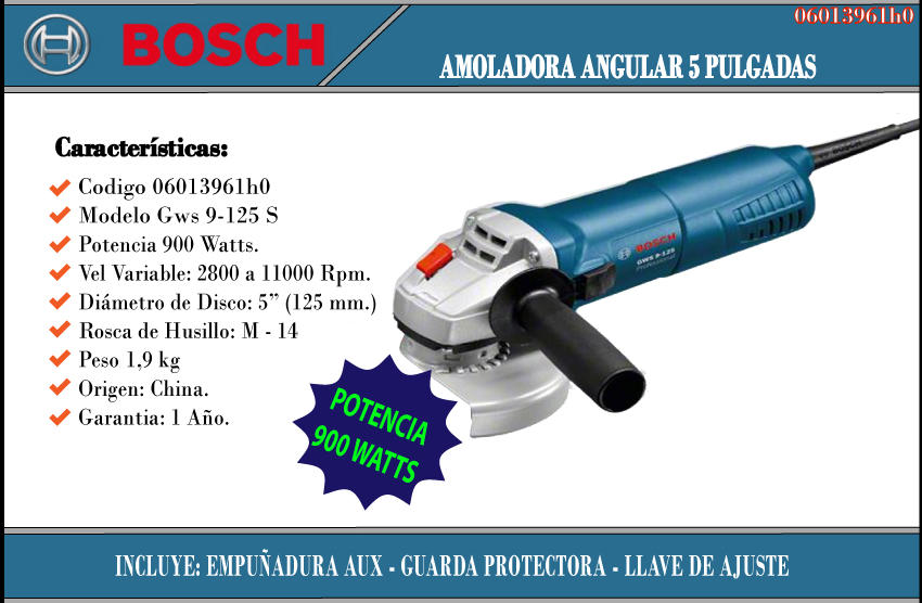 Bosch Amoladora 125 Mm 5" Gws9-125s 900w - Vel. Variable