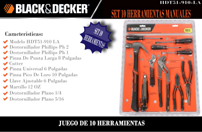 Black & Decker Set 10 Piezas Herramientas Manuales (hdt51-910)
