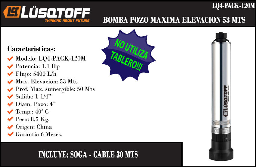 Lusqtoff Bomba Sumergible Pozo 4pack 53mts 220v 1.1hp 5400 L/h