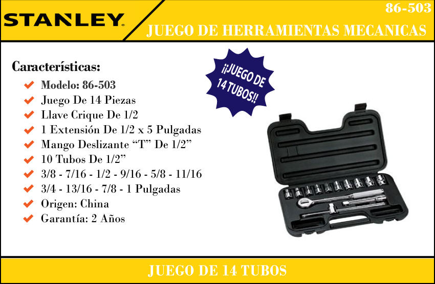 Stanley Set 14 Pzas Bocallaves Wkm 1/2''- Pulgadas 86-503