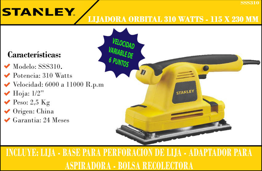 Stanley - Lijadora Orbital 1/2 Hoja 220w 310w Sss310-ar