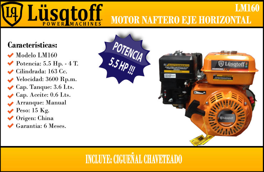 Lusqtoff Motor Naftero 5.5hp 163cc 4 Tiempos Eje Horizontl