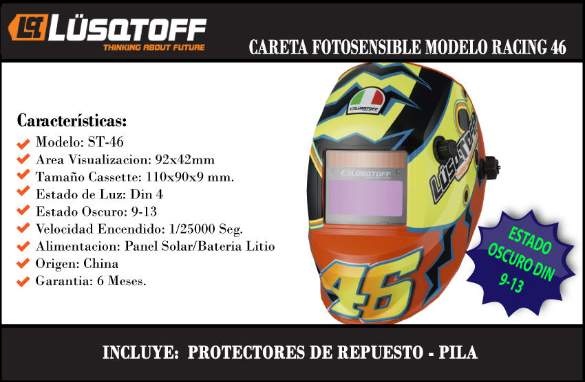 Lusqtoff Careta Mascara P/ Soldar Fotosensible Racing 46