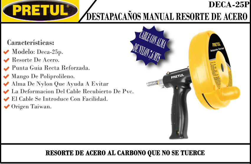 Pretul Destapacaños Manual Resorte Acero 7,6mts. X 1/4" Esp. (22881)