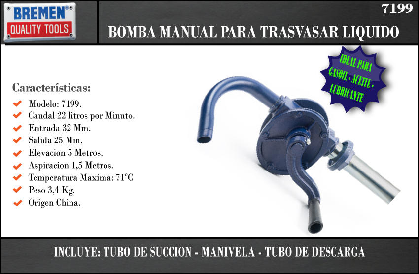 Bremen Bomba Trasvasadora Metálica Para 200 Litros