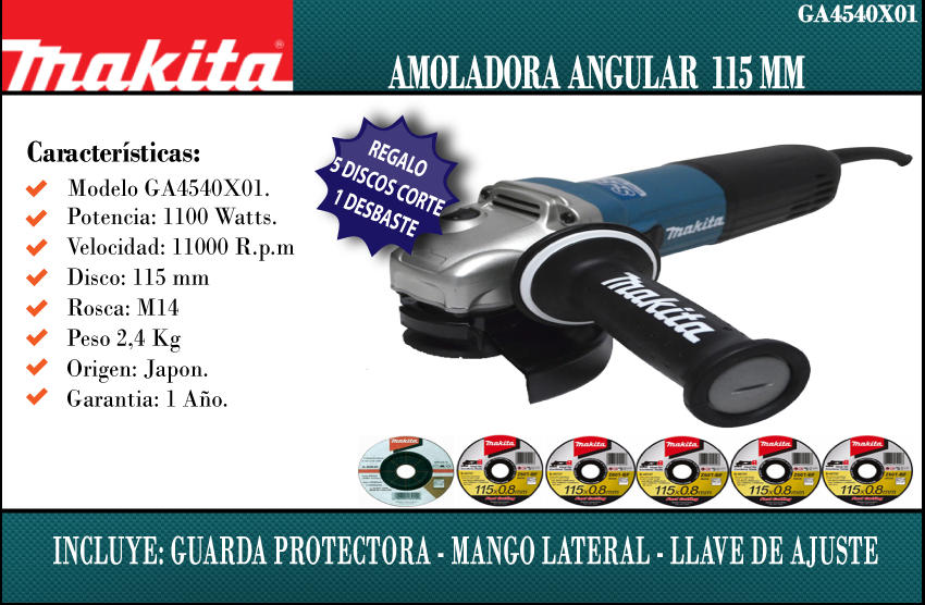 Makita Amoladora 115mm 1100w V. Var. 11000 Rpm