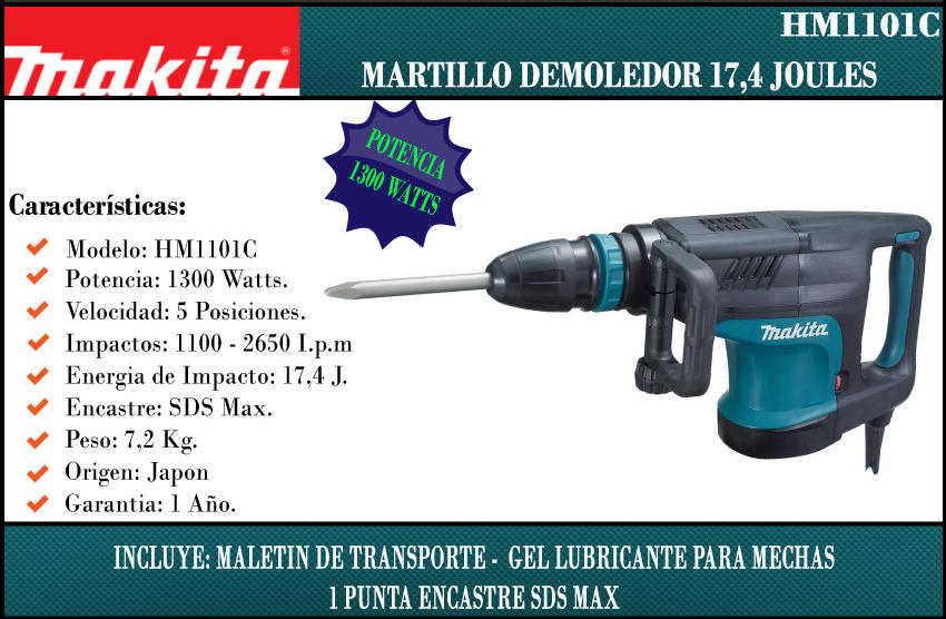 Makita Martillo Demoledor Max 1300w 17.4js 7,3kg
